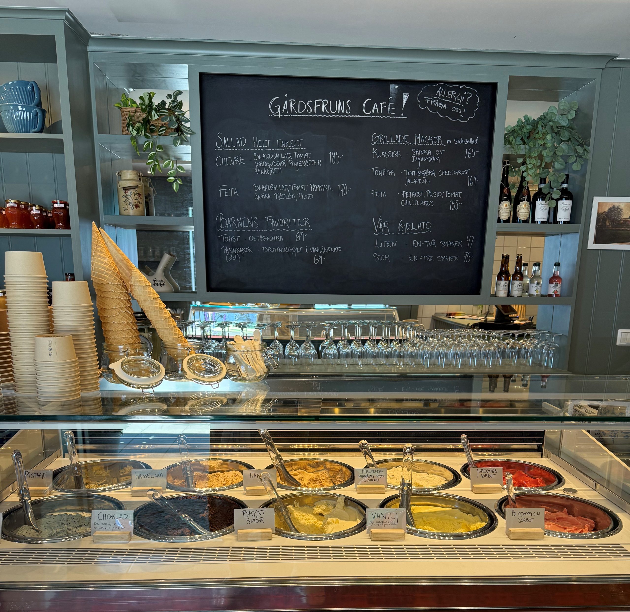 Det ska vara riktigt gott med glass och det är det när den är gjord med kärlek och serveras nygjord. Gårdens egen gelato med fasta favoriter men även några nya smaker som gästar lite då och då. Kom och smaka!